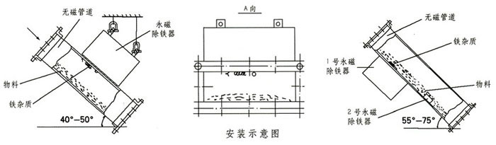 RCYA管道永磁除鐵器包括無磁管道和永磁鐵兩部分,專用于對(duì)封閉管道內(nèi)非磁性物料的除鐵,永磁除鐵器內(nèi)部采用高性能稀土強(qiáng)磁材料組成復(fù)合磁系。具有體積小、磁力大、重量輕、除鐵干凈、方便、無能耗、使用壽命長(zhǎng)等特點(diǎn)。適合沒有輸送皮帶,只能提供下料溜槽的場(chǎng)合。當(dāng)散狀物料經(jīng)過管道式永磁除鐵器時(shí),鐵雜物被高場(chǎng)強(qiáng)的永磁鐵所吸附,清除鐵雜質(zhì)時(shí),打開管道專用門將雜質(zhì)取除。該設(shè)備適用于含鐵量較少的場(chǎng)合,含鐵較多的場(chǎng)合應(yīng)選用自卸式除鐵器。主要應(yīng)用于水泥、化工、煤炭、塑料、耐火材料、建材、造紙等行業(yè)的下料管道中清除鐵雜物。